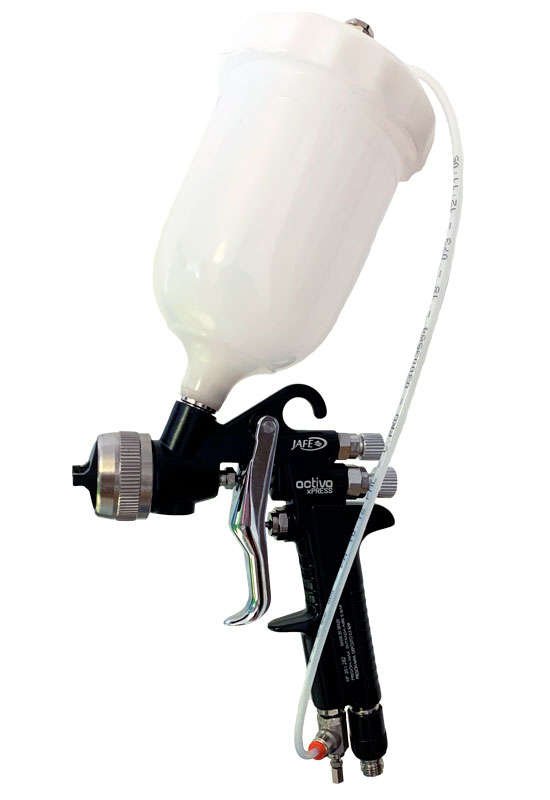 Pistolas presurizables de altos acabados, con depósito regulable y optimizada para un bajo consumo de aire. Ideal para productos como epoxi, masillas, recubrimientos tipo forja, gelcoat, y barnices. Cuenta con el sistema NT max y acabados de alta calidad. El consumo de aire varía según el producto.